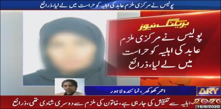 اے آر وائی نیوز کی رپورٹ کے مطابق گجرپورہ زیادتی کیس میں پولیس نے کارروائی کرتے ہوئے مرکزی ملزم عابد علی کی اہلیہ کو حراست میں لے لیا۔