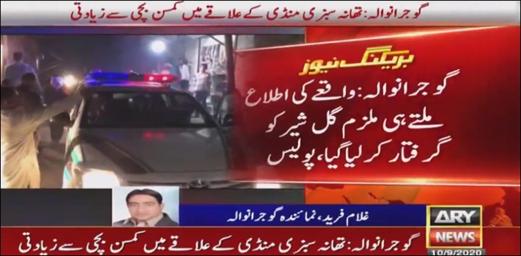 نمائندہ اے آر وائی نیوز غلام فرید کے مطابق گوجرانوالہ کے علاقے سبزی منڈی تھانے کی حدود میں 22 سالہ پڑوسی نے کمسن بچی کو زیادتی کا نشانہ بنا ڈالا۔