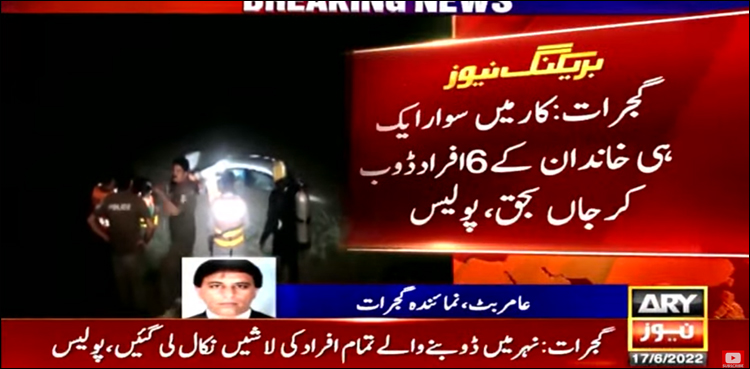 گجرات: کار نہر میں ڈوبنے سے ایک ہی خاندان کے 6 افراد جاں بحق ہو گئے۔