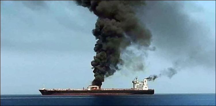 دبئی: خلیج عمان میں دو تیل بردار بحری جہازوں پر حملہ ہوا جس کے بعد ایک بحری جہاز میں آگ بھڑک اُٹھی۔
