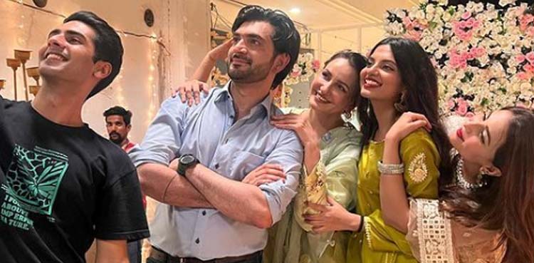 اس کے برعکس تصاویر میں ’ڈرامے کے کردار صبا فیصل، اشنا شاہ، مصدق ملک، دانیہ انور اور جنیس کو خوشگوار موڈ میں دیکھا جاسکتا ہے۔