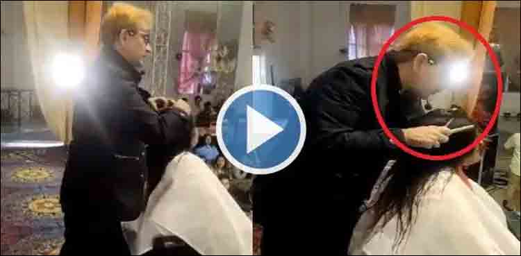 بھارت کے مشہور حجام (ہیئر ڈریسر) کی بال تراشتے وقت خاتون کے بالوں پر تھوکنے کی ویڈیو نے تنازعہ کھڑا کردیا۔