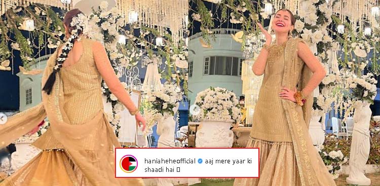 اداکارہ نے تصاویر شیئر کرتے ہوئے کیپشن میں لکھا کہ ’آج میرے یار کی شادی ہے۔‘