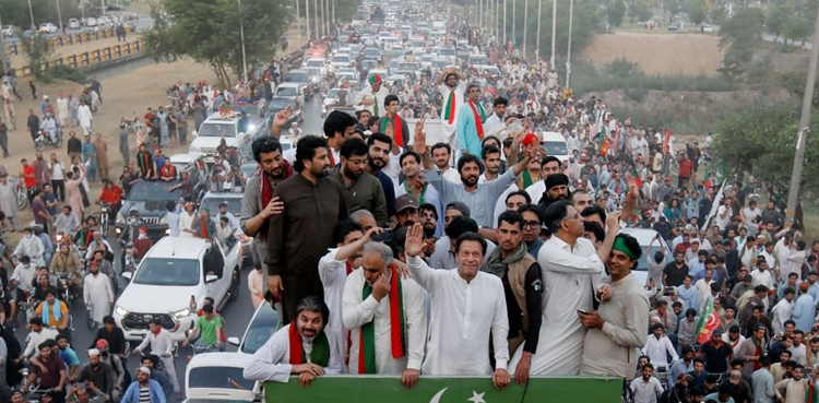 دوسری جانب پی ٹی آئی رہنما فیصل جاوید نے اپنے ٹوئٹ میں کہا کہ کچھ دیر بعد آج پنڈی بائی پاس گجرانوالہ سے چھٹے دن کے سفر کا آغاز ہونے والا ہے، پورے جی ٹی روڈ پر جگہ جگہ قافلے مارچ کا حصہ بنتے جارہے ہیں، عمران خان لاکھوں پر مشتمل کارواں کی قیادت کرتے ہوئے 10 نومبر کو راولپنڈی پہنچیں گے-