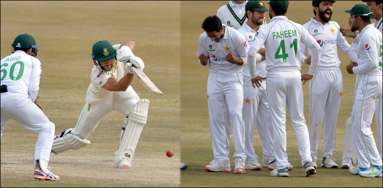 راولپنڈی: پاکستان اور جنوبی افریقہ کے درمیان جاری دوسرے ٹیسٹ میچ کے پانچویں روز جنوبی افریقہ 135 رنز 3 وکٹ گنوا چکی۔