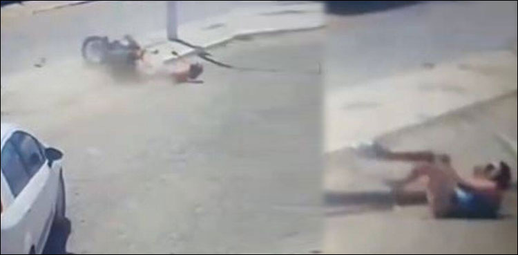 بائیک سوار کے سر پر الیکٹرک پول گر گیا، رونگٹے کھڑے کردینے والی ویڈیو