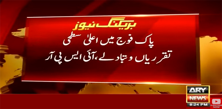 پاک فوج میں اعلیٰ سطح پر تقرریاں و تبادلے کیے گئے ہیں۔