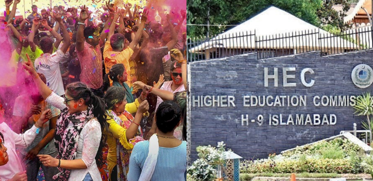 گزشتہ روز ہائر ایجوکیشن کمیشن نے تمام تعلیمی اداروں میں ہولی کی تقریبات پر پابندی عائد کرنے کا نوٹیفکیشن جاری کیا تھا جس میں ایچ ای سی نے کہا تھا کہ اس طرح کی سرگرمیاں ملک کی سماجی و ثقافتی اقدار سے مکمل طور پر لاتعلقی کو ظاہر کرتی ہیں اور اسلامی تشخص کو نقصان پہنچاتی ہیں۔