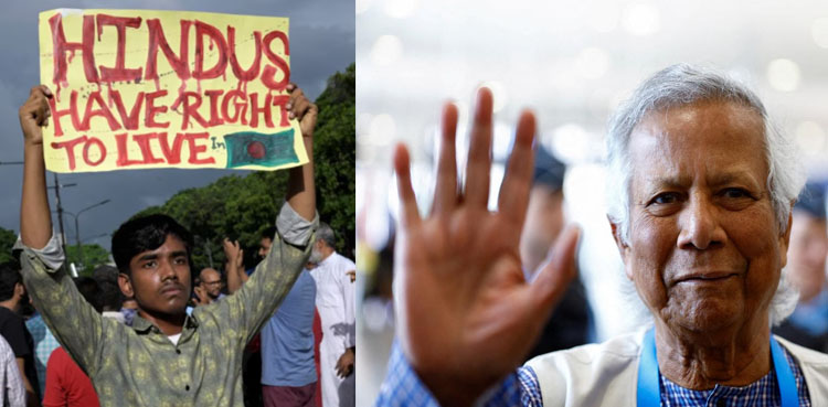 عبوری حکومت کا چیف بننے کے بعد محمد یونس کا بھارتی وزیراعظم نریندر مودی سے بات چیت میں کہنا تھا کہ ڈھاکہ ہندوؤں اور دیگر سبھی اقلیتی گروپوں کے تحفظ کو ترجیح دے گا۔