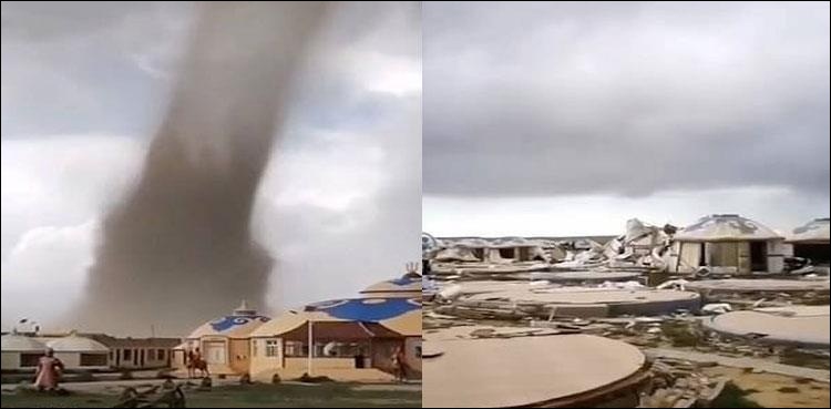 رپورٹ کے مطابق انرمنگولیا کے شہر باؤتو میں موسم ایک دم تبدیل ہوا اور تیز ہوا چلنے لگی، اس کے ساتھ ہی شہریوں کو کئی فٹ بلندی تک بگولا نظر آیا۔