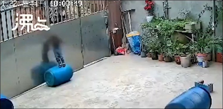صحن میں پلاسٹک کے تین ڈرم بھی موجود تھے جن میں سے ایک کو بچے نے اپنے کھیل میں استعمال کرنے کا فیصلہ کیا۔معاملہ کچھ یوں ہوا کہ بچے نے ڈرم پر چڑھ کر دروازے میں رسی ڈالی اور پھر پھندے میں گردن ڈال کر کھڑا ہوگیا۔