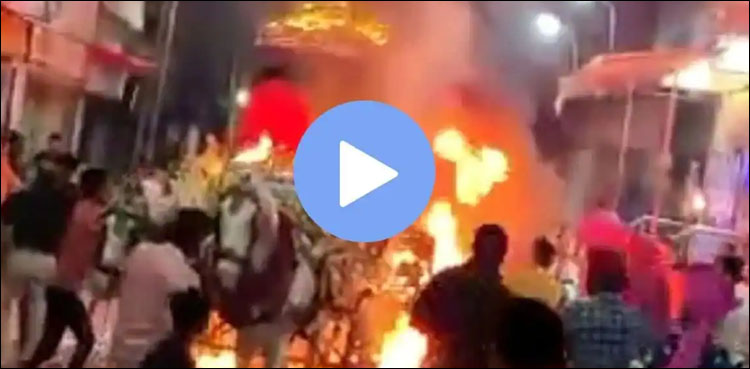 بھارتی ریاست گجرات کے پنچ محل ضلع میں بگھی میں بارات لائی جارہی ہے اور دلہا اسی میں موجود تھا کہ اچانک بگھی میں آگ لگ گئی جس کے باعث افرا تفری مچ گئی۔