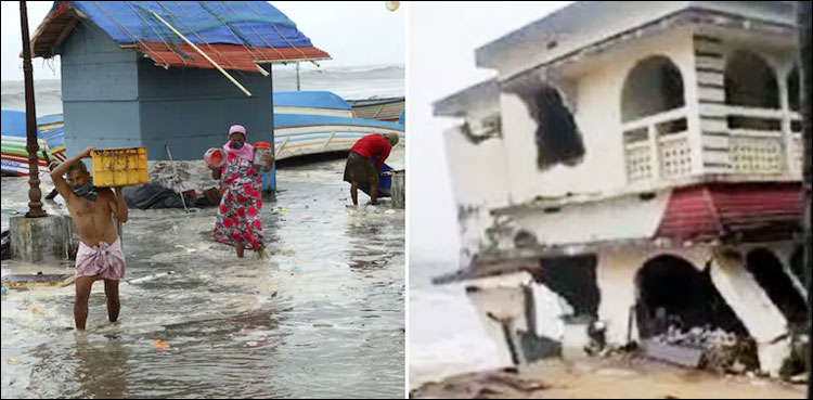 سمندری طوفان کی وجہ سے ساحلی علاقوں میں نظام زندگی درہم برہم ہوگیا جس کی ایک جھلک سوشل میڈیا پر ویڈیو کی صورت میں وائرل ہورہی ہے، جس میں ایک گھر کو سمندر برد ہوتے دکھایا گیا ہے۔