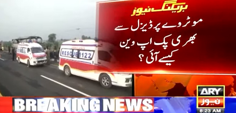 اس حادثے کے بعد موٹر وے پولیس کی کارکردگی پر سوالات کھڑے ہوگئے ہیں کہ موٹر وے پولیس کی آنکھوں کے سامنے ڈیزل سے بھری پک وین موٹر وے پر کیسے آگئی اور اس کو کیوں نہ روکا گیا۔