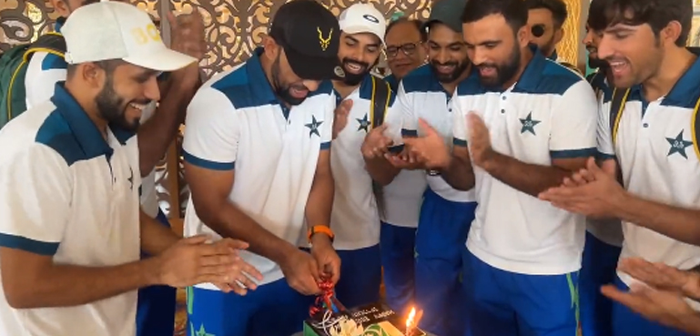 اسی دوران شاداب خان اور حارث رؤف بھی مبارک باد دینے والوں میں شامل ہوتے ہیں اور کہتے ہیں بھائی دیکھنے میں تو آپ 16 سال کے لگتے ہو لیکن یہ بتا دو کہ اب آپ 32 سال کے ہو گئے ہو یا پھر 33 سال کے، یہ بات سنتے ہی محفل زعفران زار بن جاتی ہے۔