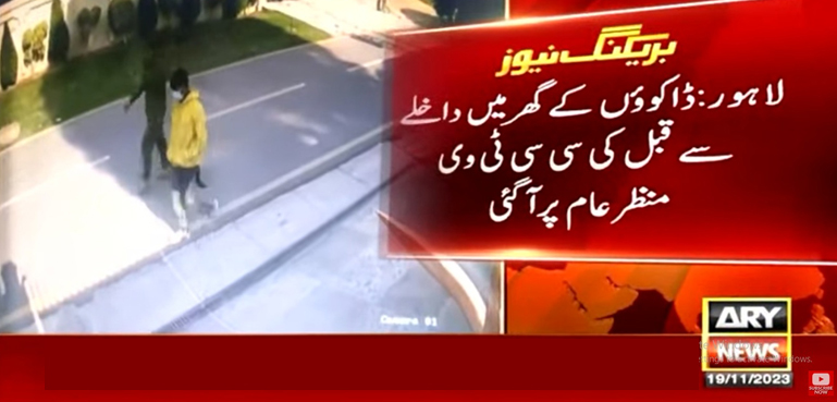 فوٹیج میں دیکھا جا سکتا ہے کہ 6 ڈاکو چند منٹ کے وقفے سے 2،2 کر کے گھر میں داخل ہوئے۔ پہلے جانے والے دو ڈاکو رنگ ساز بن کر بالٹی اٹھائے گھر میں داخل ہوتے ہیں جس کے چند منٹ بعد ان کے دو ساتھی بھی گھر میں جاتے دکھائی دیتے ہیں بعد ازاں کچھ دیر کے بعد مزید دو ڈاکو گھرکی طرف جاتے ہیں۔