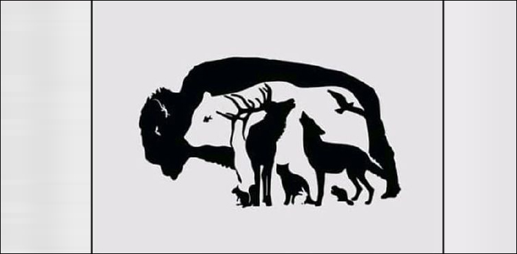 درج ذیل تصویر میں آپ کو ایک کالی و سفید تصویر نظر آرہی ہے اور مصور نے اس ایک تصویر میں مختلف جانوروں کی تصویر بنائی ہے۔