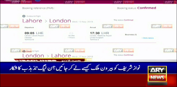ذرائع کا کہنا ہے کہ نواز شریف کے لیے بدھ کو کمرشل فلائٹ قطر ایئر کی کیو آر 629 میں بھی ٹکٹ بک کرلی گئی ہے، نواز شریف کے ساتھ شہباز شریف اور ڈاکٹر عدنان کی بھی ٹکٹیں بک ہیں۔