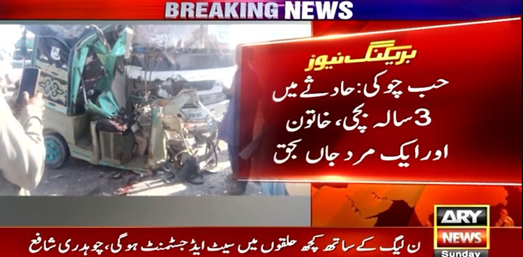 کراچی: حب چوکی کے قریب بس اور رکشے میں ٹکر کے باعث خاتون اور بچی سمیت3 افراد جاں بحق ہوگئے۔