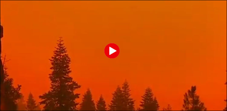 کیلی فورنیا کے جنگلات میں خوفناک آتشزدگی کے نتیجے میں آسمان کا رنگ اچانک سرخ ہوگیا۔