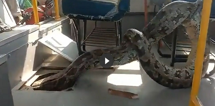 ویڈیو میں دیکھا جا سکتا ہے کہ اژدہا وین کی نشستوں کے نیچے رینگ رہا ہے۔