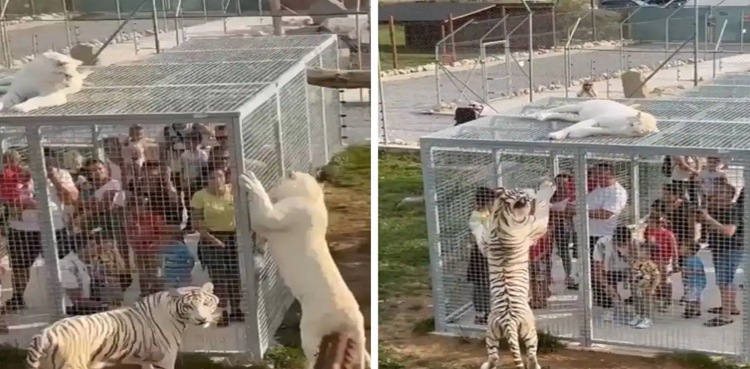 چین کے شہر چھونگ چھنگ میں واقع اس چڑیا گھر میں انسانوں کو ایک پنجرے میں قید کرنے کے بعد خطرناک جانوروں کے بالکل قریب چھوڑ دیا جاتا ہے۔
