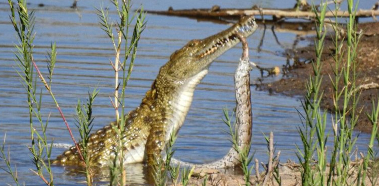 یہ غیرمعمولی واقعہ جنوبی افریقا کے کروگر نیشنل پارک میں دیکھا گیا جہاں بھوک کے مارے مگرمچھ نے اژدھے کو کھا لیا۔