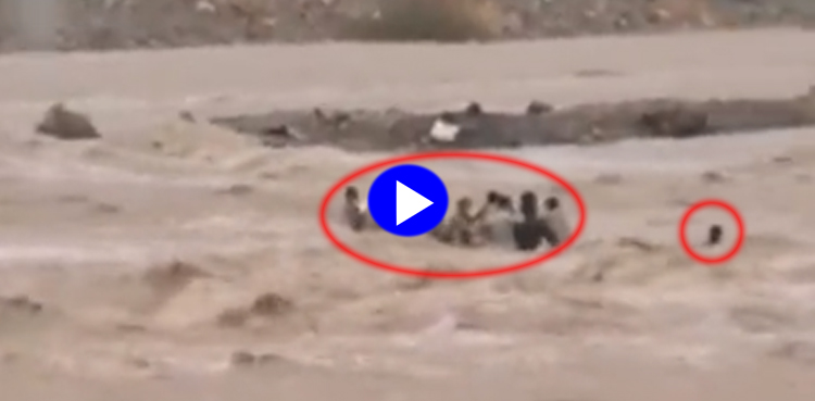 بعد ازاں مذکورہ افراد کا اتحاد ٹوٹا اور تمام لوگ لڑکھڑا گئے، ویڈیو میں ایک شخص کو بہتا ہوا دیکھا جاسکتا ہے کہ جبکہ تھوڑے ہی فاصلوں پر ایک تیرتی ہوئی گاڑی بھی نظر آئی۔