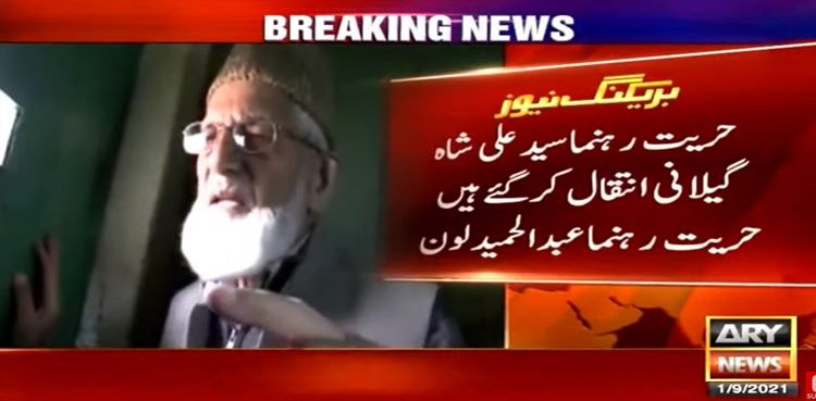 کشمیر میڈیا سروس کے مطابق سید علی گیلانی 92 برس کی عمر میں خالق حقیقی سے جا ملے وہ علالت کے باوجود عرصہ دراز سے گھر میں نظر بند تھے۔