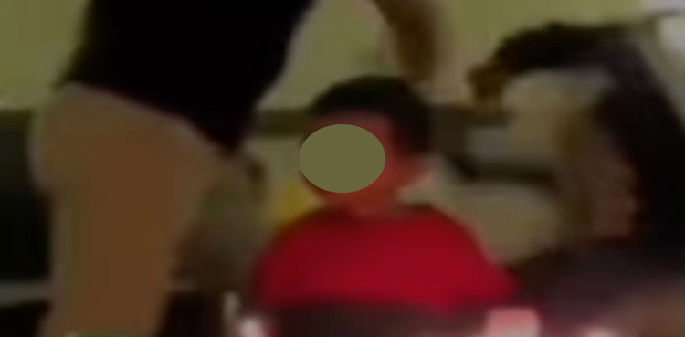 مذکورہ ویڈیو میں ایسا ہی ایک اور واقعہ دکھایا گیا ہے، ویڈیو میں دیکھا جا سکتا ہے کہ ایک شخص اپنی بیوی کو بچے کے سامنے بے دردی سےپیٹ رہا ہے، یہی نہیں باپ کے اس عمل کو دیکھا دیکھی بیٹا بھی اپنی ماں پر ہاتھ اٹھا رہا ہے۔