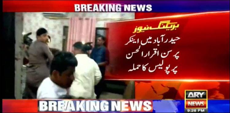حیدرآباد: سندھ کے شہر حیدرآبادمیں پولیس نےپروگرام سرعام کےاینکرپرسن اقرارالحسن پرحملہ کردیا.