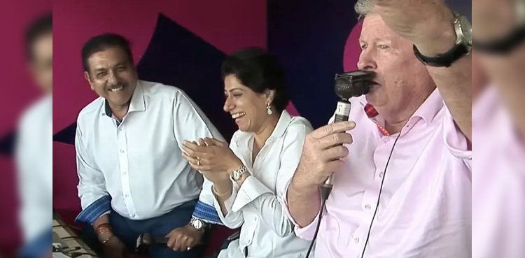 شائقین کے لیے اس وقت دلچسپ صورتحال پیدا ہوگئی جب کمنٹری باکس میں نیوزی لینڈ کے سابق کرکٹر اور موجودہ کمنٹیٹر ای این اسمتھ نے روی شاستری کے کمنٹری کرنے کے انداز کی نقل اتاری۔