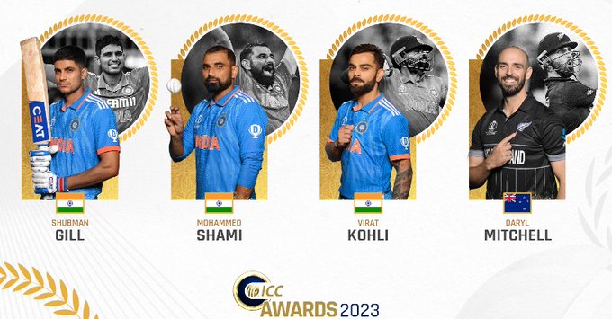 بھارت میں شاندار کرکٹ ورلڈ کپ کھیلنے والے چار کھلاڑیوں کو ICC مینز ون ڈے کرکٹر آف دی ایئر 2023 ایوارڈ کے لیے شارٹ لسٹ کیا گیا ہے۔