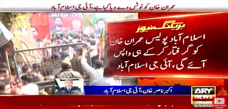 دوسری جانب آئی جی اسلام آباد کے دعوے کے برعکس پولیس کی ٹیم نوٹس وصول کرانے کے بعد زمان پارک سے واپس لوٹ گئی ہے۔
