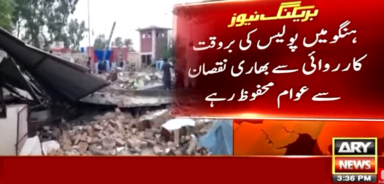 اے آر وائی نیوز کے مطابق آج صوبہ خیبر پختونخوا میں ہنگو میں مسجد میں اس وقت دھماکا ہوا جب نماز جمعہ کے لیے خطبہ دیا جا رہا تھا۔ دھماکے کے نتیجے میں 4 نمازی شہید جب کہ 12 زخمی ہوئے۔