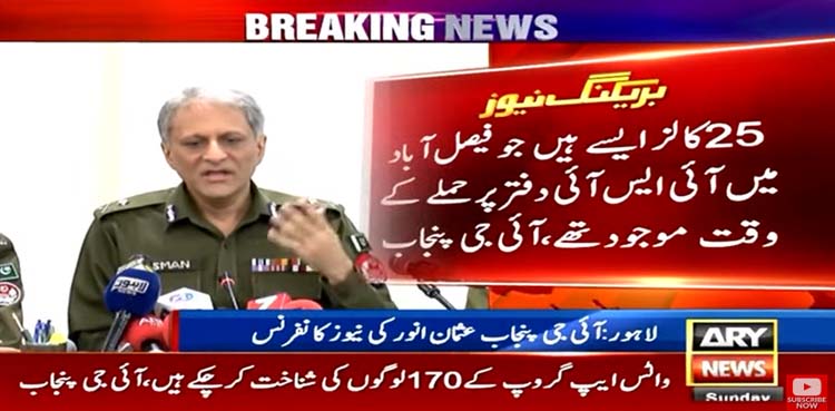 آئی جی پنجاب نے کہا کہ جناح ہاؤس، جی ایچ کیو، ریڈیو پاکستان اور دیگر اہم مقامات پر حملہ ایک وقت میں ہوا، 25 کالز ایسے ہیں جو فیصل آباد میں آئی ایس آئی دفتر پر حملے کے موجود تھے، ایک ایک کال کا نمبر موجود ہے تمام ریکارڈ عدالت میں پیش کررہے ہیں۔