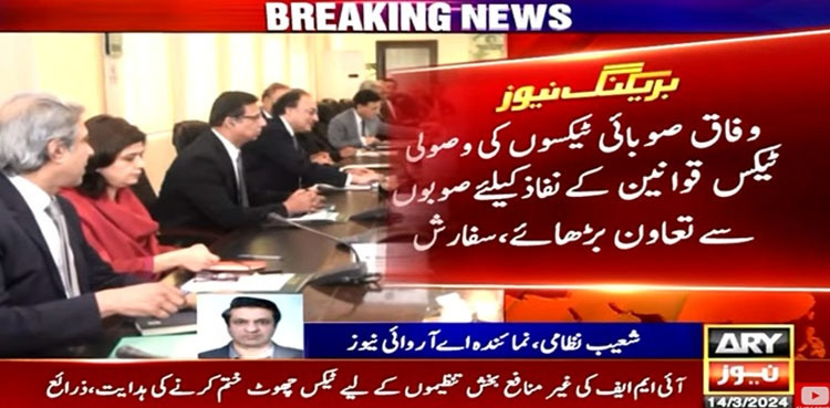 ذرائع نے بتایا کہ زرعی آمدن اور پراپرٹی ٹیکس کی بنیاد میں توسیع کو بھی ٹی او آرز میں شامل کرنے کا مطالبہ کیا گیا ہے۔ وفاق صوبائی ٹیکسوں کی وصولی، ٹیکس قوانین کے نفاذ کیلئے صوبوں سے تعاون بڑھائے کی سفارش کی گئی ہے۔