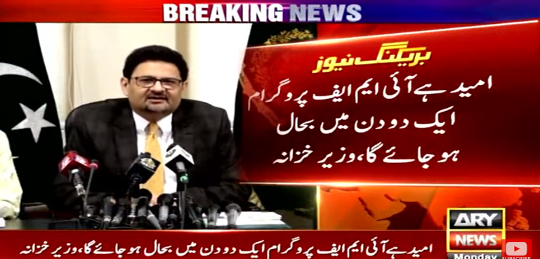 اے آر وائی نیوز کے مطابق وزیر خزانہ مفتاح اسماعیل نے پارلیمنٹ ہاؤس میں صحافیوں سے گفتگو کرتے ہوئے کہا کہ امید ہے کہ آئی ایم ایف پروگرام ایک دو روز میں بحال ہوجائیگا، آئی ایم ایف کا تنخواہ بڑھانے سے کوئی تعلق نہیں اور نہ ہی اسے ملازمین کی تنخواہوں میں اضافے پر اعتراض ہے۔