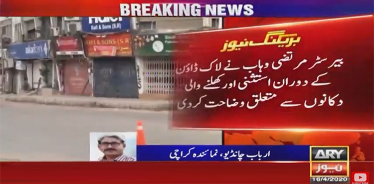 کراچی: ترجمان سندھ حکومت بیرسٹر مرتضیٰ وہاب نے لاک ڈاؤن میں استثنیٰ اور کھلنے والی دکانوں کےحوالےسے اہم وضاحت پیش کر دی۔