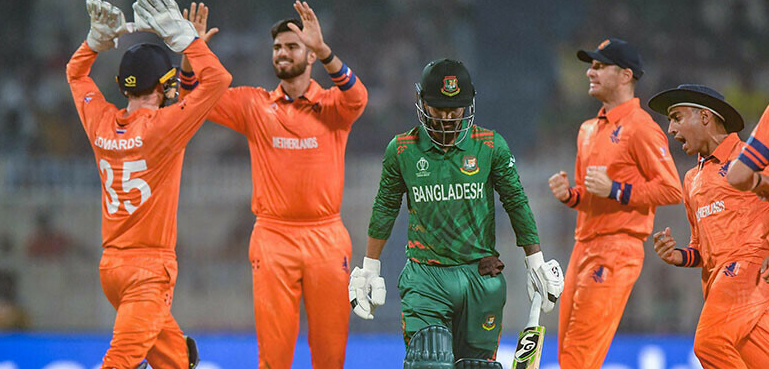 افغانستان دفاعی چیمپئن انگلینڈ کے ساتھ پاکستان کو بھی رواں ورلڈ کپ میں شکستوں سے دوچار کر کے میگا ایونٹ سے باہر ہونے کے دہانے پر پہنچا چکی ہے تو میگا ایونٹ میں سب سے کمزور سمجھی جانے والی نیدر لینڈ کی ٹیم نے پہلے مضبوط ٹیم جنوبی افریقہ کو ہرایا اور پھر رینکنگ میں اپنے سے بہتر بنگلہ دیش کو شکست سے دوچار کیا۔