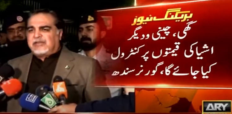 اسلام آباد میں وزیراعظم کی زیرصدارت وزرائے اعلیٰ کے اجلاس کے بعد میڈیا سے گفتگو کرتے ہوئے گورنر سندھ نے بتایا کہ وزیراعظم نے مہنگائی کو قابو کرنے کے لیے تمام وزرائے اعلیٰ کو طلب کیا تھا، جس میں انہوں نے سفارشات بھی پیش کیں۔