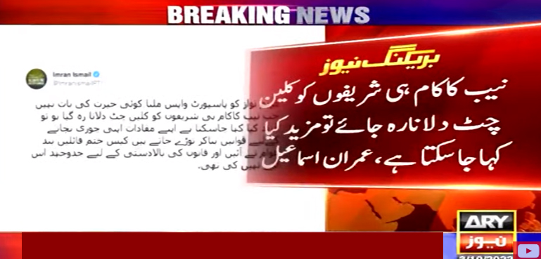 عمران اسماعیل نے مریم نواز کو پاسپورٹ واپسی کرنے کے عدالتی فیصلے پر کہا ہے جب نیب کا کام ہی شریفوں کو کلین چٹ دلانا رہ گیا ہو تو مزید کیا کہا جا سکتا ہے۔
