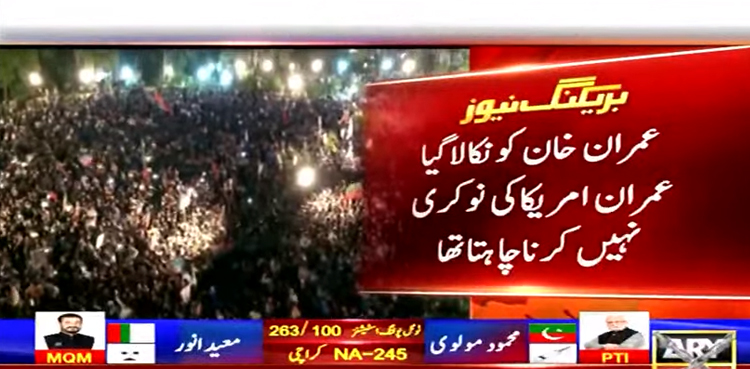 سابق وزیراعظم نے کہا کہ مجھے پاکستان میں بسنے والوں کی فکر ہے، جب تک ملک کو حقیقی آزادی نہ دلا دوں سڑکوں پر نکلتا رہوں گا، انہوں نے سوال کیا کہ مجھے ہٹانے کی ضرورت کیوں پڑی؟، کیوں بیرونی سازش سے عمران خان کو ہٹایا گیا؟، کیاعمران خان پیسے چوری کرکے باہر محلات خرید رہا تھا؟، یا میں ملک میں زمینوں پر قبضے کررہا تھا یا فیکٹریاں بنارہاتھا؟۔