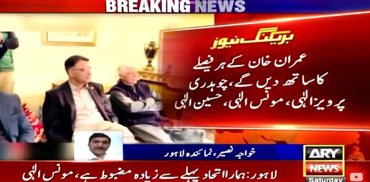 اے آر وائی نیوز کے مطابق چوہدری پرویز الٰہی کے صاحبزادے مونس الٰہی نے سماجی رابطے کی ویب سائٹ ٹویٹر پر اپنے پیغام کہا کہ ’چیئرمین پی ٹی آئی عمران خان اور دیگر رہنماؤں سے ملاقات ہوئی ہے۔