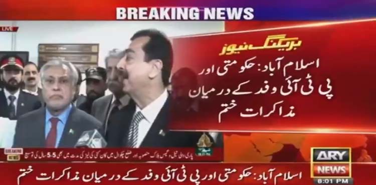 اسلام آباد: حکومت اور پی ٹی ائی وفد کے درمیان مذاکرات کا پہلا دور ختم ہوگیا۔