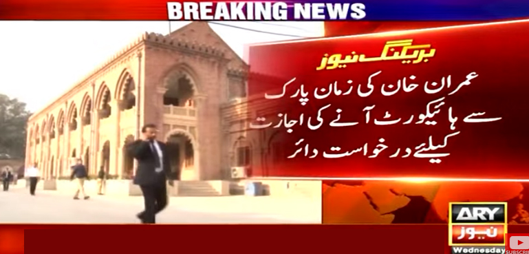 اے آر وائی نیوز کے مطابق پاکستان تحریک انصاف کے چیئرمین اور سابق وزیراعظم عمران خان کی زمان پارک سے حفاظتی ضمانت کے لیے لاہور ہائیکورٹ آنے کی اجازت کے لیے درخواست عدالت عالیہ میں دائر کر دی گئی ہے۔