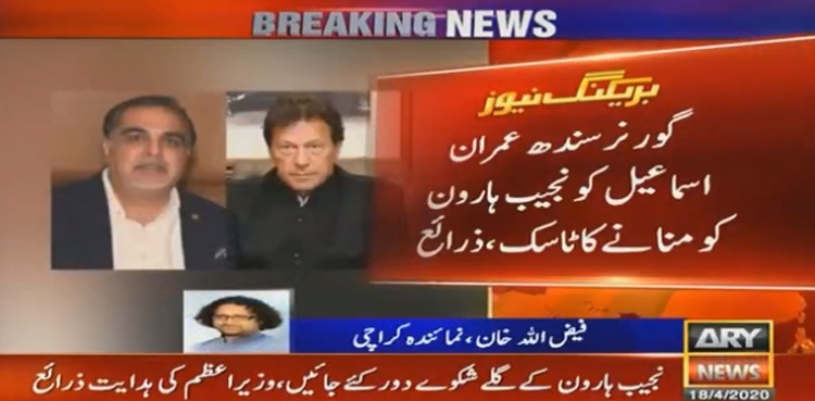 وزیر اعظم کی گورنرسندھ کو نجیب ہارون کو منانے کی ہدایت
