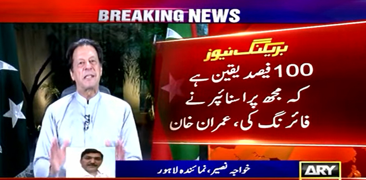 تفصیلات کے مطابق چیئرمین پی ٹی آئی عمران خان نے زمان پارک میں سینئر صحافیوں سے غیر رسمی گفتگو کرتے ہوئے قاتلانہ حملے کے حوالے سے بتایا کہ 100 فیصد یقین ہے کہ مجھ پرا سنائپر نے فائرنگ کی، مصدقہ یقین ہے کہ فائرنگ کرنے والے ایک سے زیادہ تھے۔