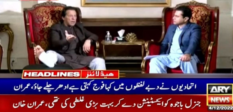 سابق وزیراعظم نے ایک نجی ٹی وی چینل کو انٹرویو دیتے ہوئے کہا ایک سوال کے جواب میں انہوں نے کہا کہ سابق آرمی چیف جنرل قمر جاوید باجوہ کو ایکسٹینشن دے کربہت بڑی غلطی کی تھی۔ فوج میں کبھی کسی کو ایکسٹینشن نہیں ملنی چاہیے، ہم نئے نئےاقتدار میں آئے تھے، مسائل بہت تھے اور اس وقت حالات ایسے بنا دیے گئے تھے۔ میں مضبوط پاکستان دیکھنا چاہتا ہوں تو اس کا مطلب ہے کہ میں فوج کو بھی مضبوط دیکھنا چاہتا ہوں۔