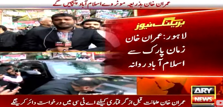 عمران خان سخت سیکیورٹی انتظامات میں اسلام آباد کے لیے روانہ ہوئے ہیں۔ ان کے ہمراہ کارکنوں کی ایک بڑی تعداد بھی قافلے کی صورت شامل ہے۔